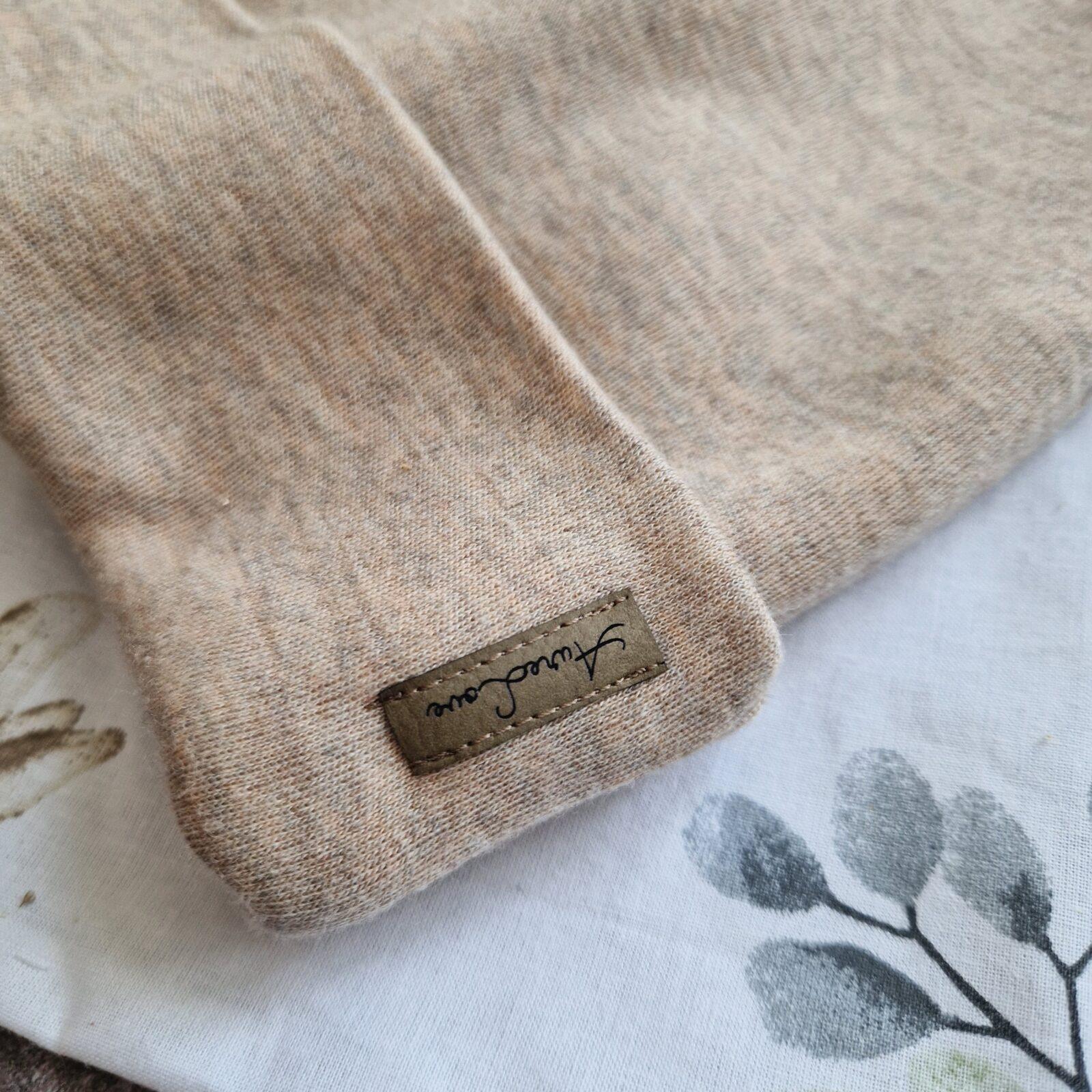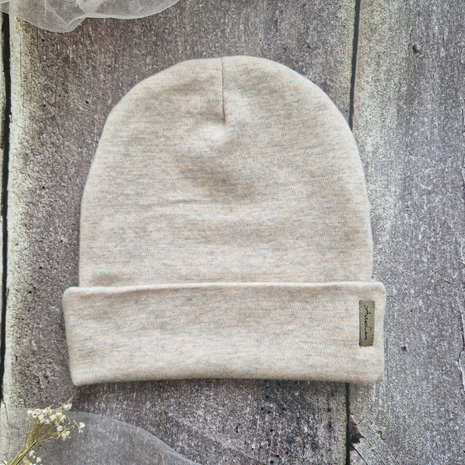 Czapki, Czapki i turbany, MERINOCzapka z wełny merino – interlock BEŻ MELANŻ z wywinięciem