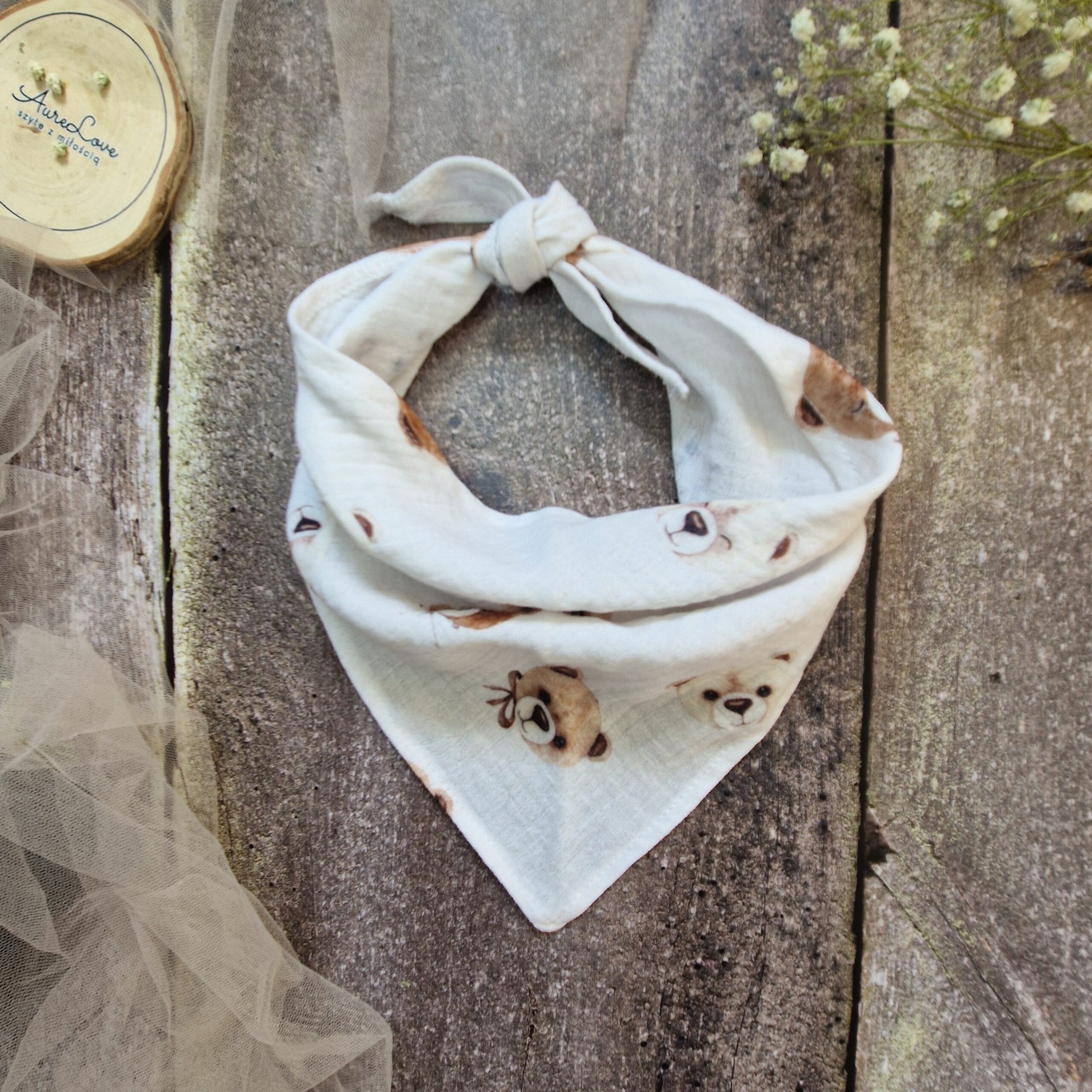 Chusty i kominy, Dodatki, Ostatnie sztukiMuślinowa chustka wiązana Misiowy zawrót głowy biel