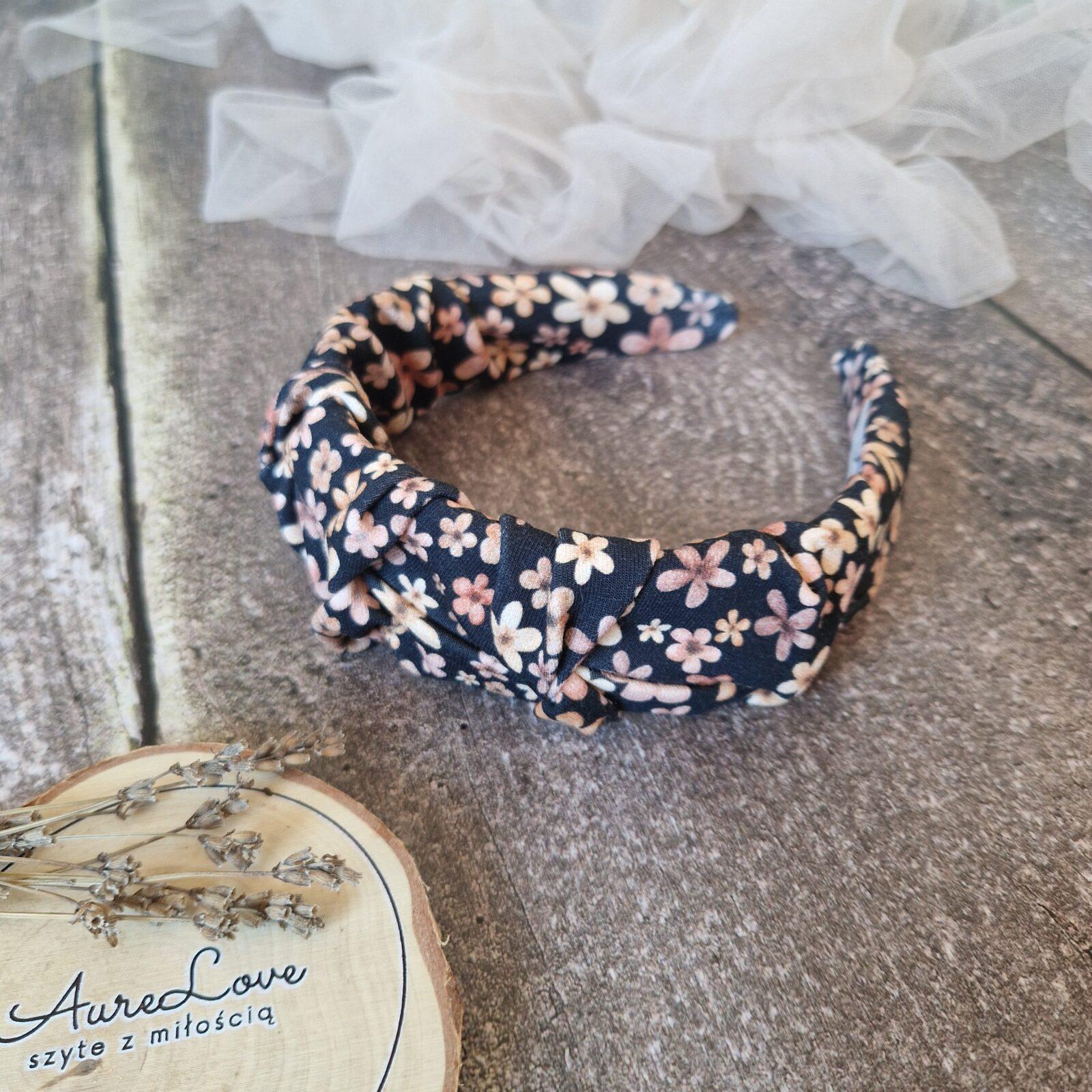 Akcesoria do włosów, Dodatki, Marszczona, Opaski na bazie, Ostatnie sztukiOpaska marszczona Drobne kwiatuszki czerń