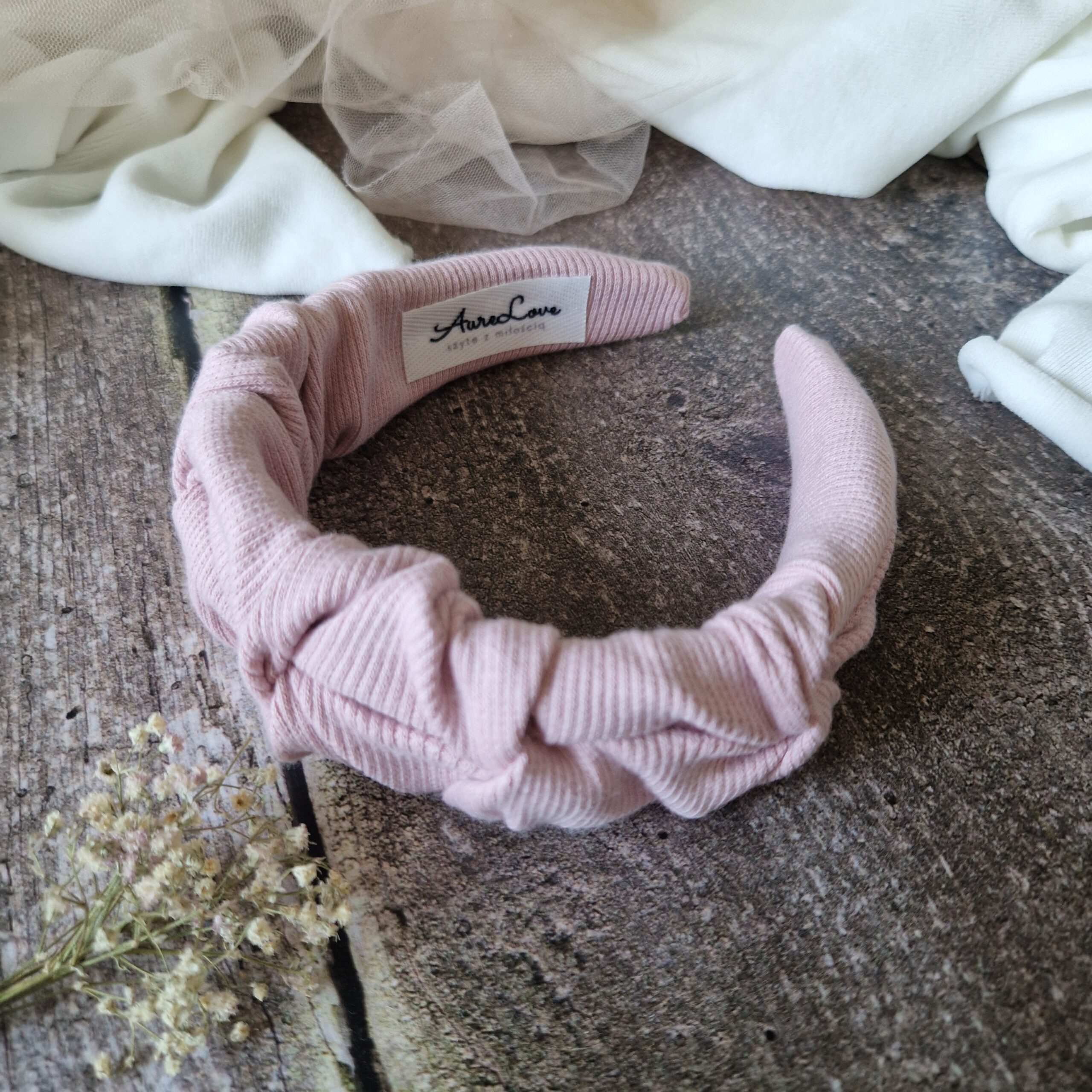 Akcesoria do włosów, Dodatki, Marszczona, Opaski na bazieOpaska marszczona prążek Brudny róż