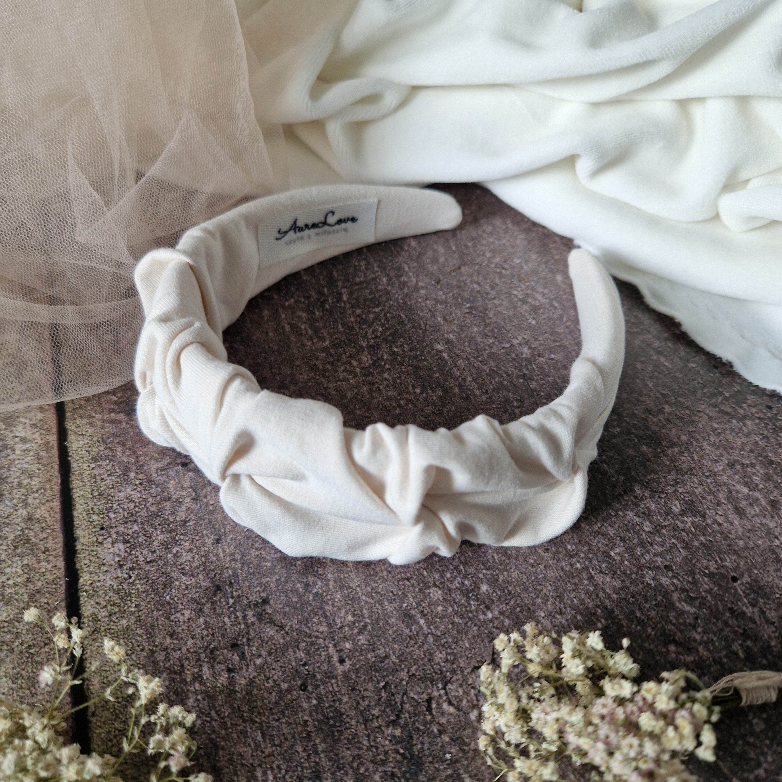 Akcesoria do włosów, Dodatki, Marszczona, Opaski na bazieOpaska marszczona Śmietankowa