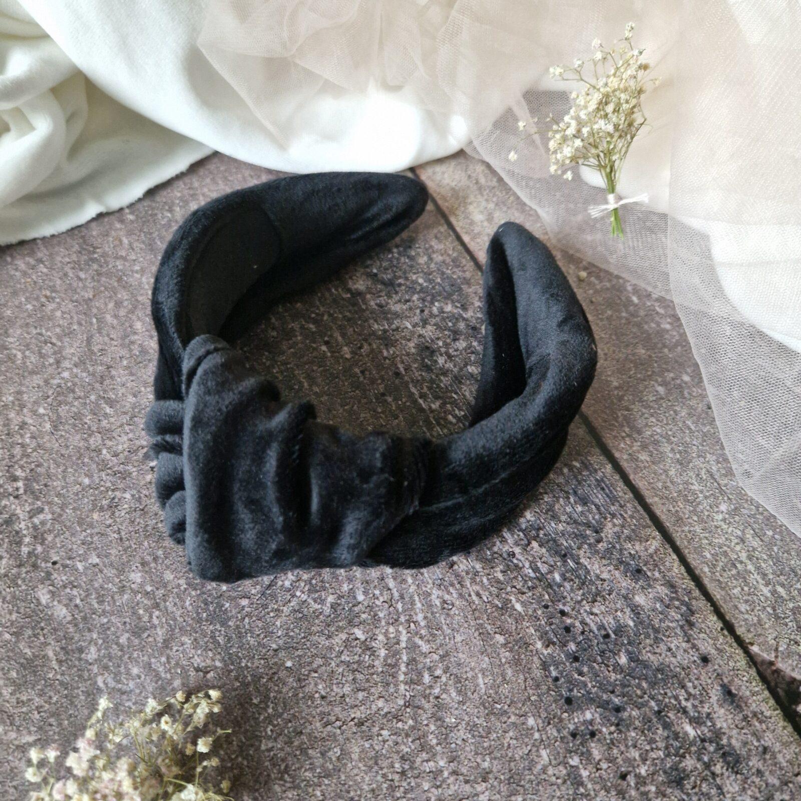 Welurowa opaska z supłem w kolorze czarnym, ręcznie szyta w PolsceOpaska supeł Welur soft Black