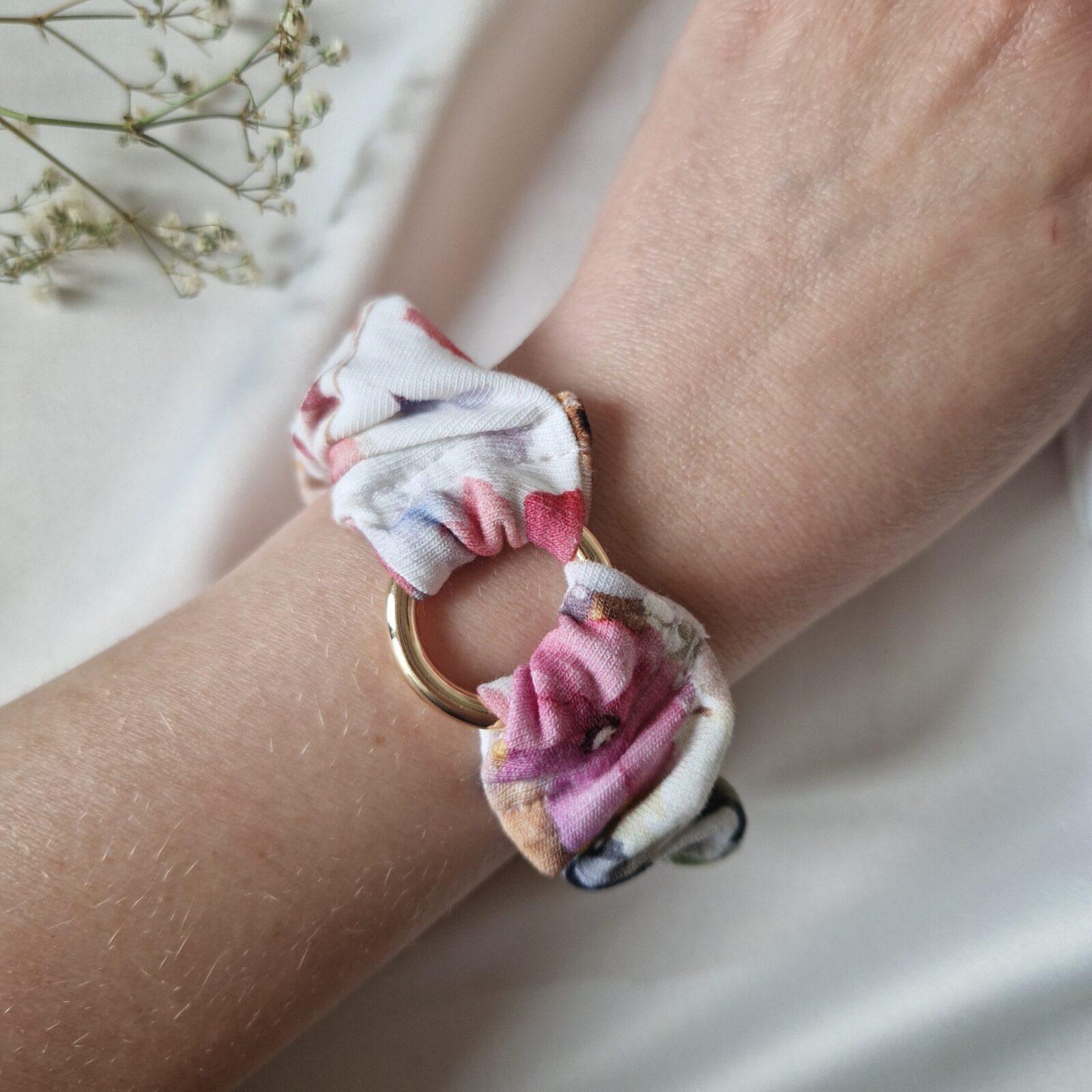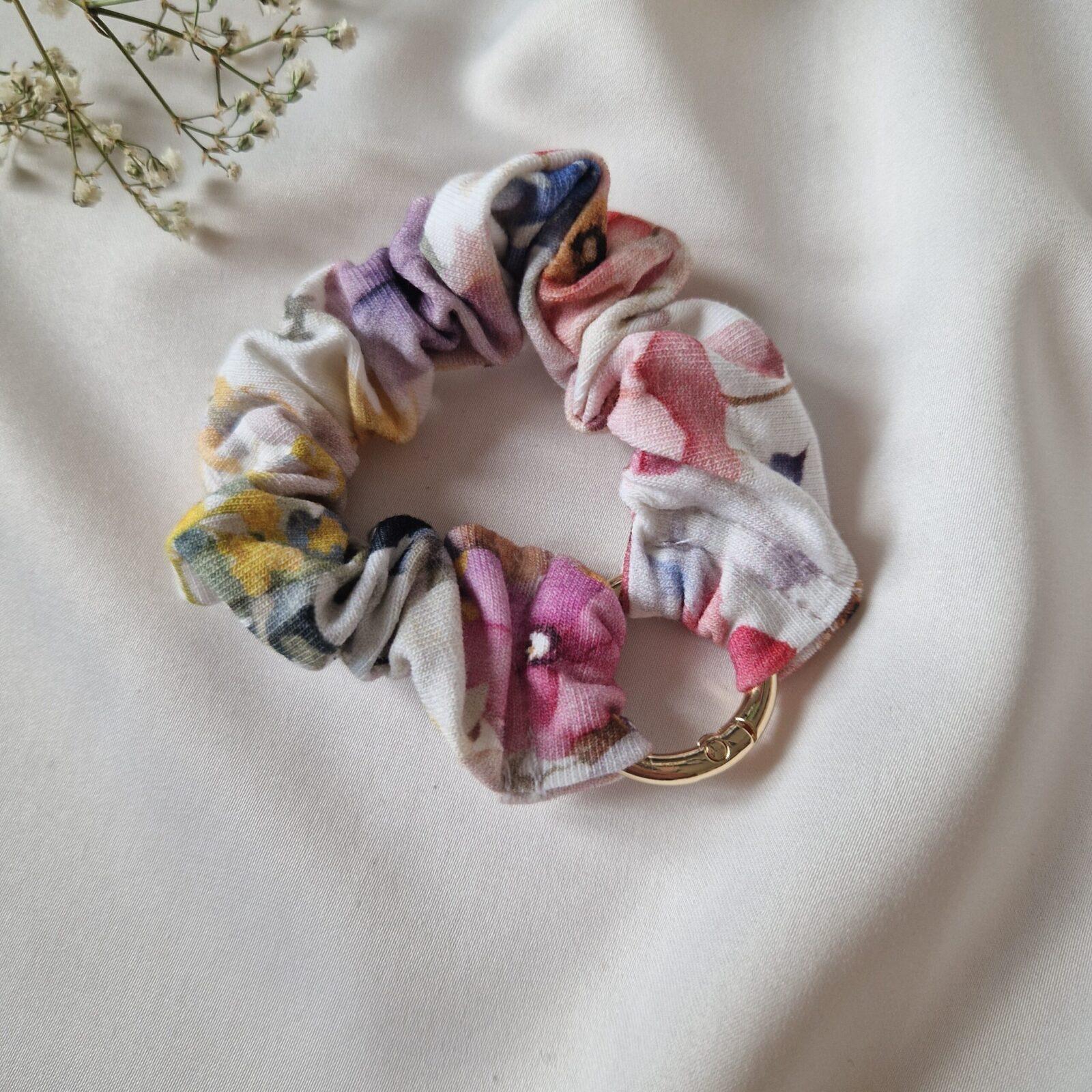 Scrunchie do włosów z otwieranym kółkiem, dzięki któremu przypniesz ją do kluczy, torby, zwiążesz włosy, a także założysz jako ozdobę na nadgarstek.